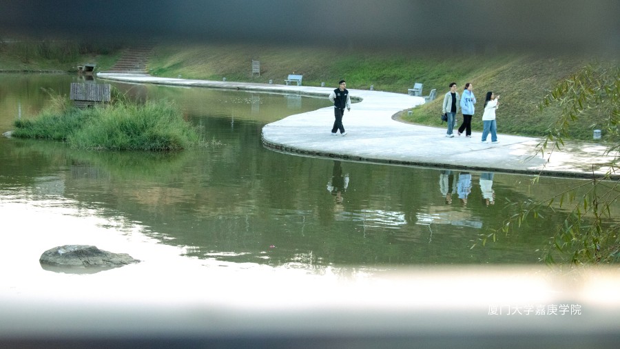 2023年11月30日,厦门大学嘉庚学院小巨蛋旁,几位同学正在小道上漫步。
