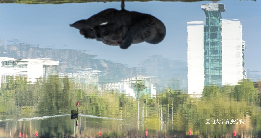 黑天鹅休息时蜷缩身子 像一朵倒挂的乌云