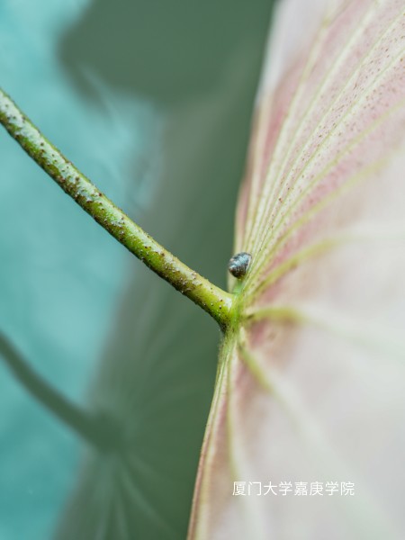 平整的荷叶上有一只蜗牛 很像青春痘