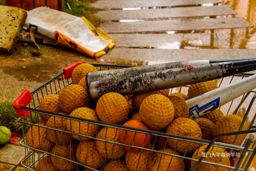 金属篮、旧球棍、黄棒球、磨损、潮湿,还原生活本真,传递运动余韵。