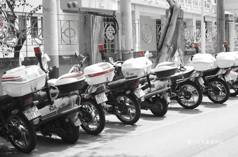 走在中山公园附近的小路上,发现了警车的藏匿处,一辆辆帅气的警车整齐的排列着,好像显示着当地警察局的秩序井然。