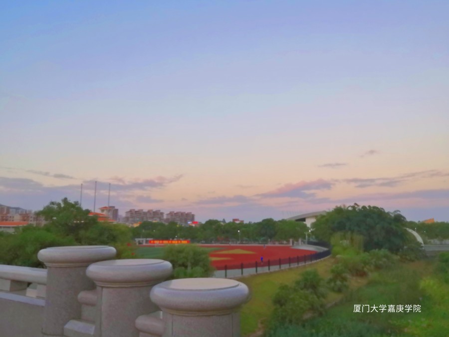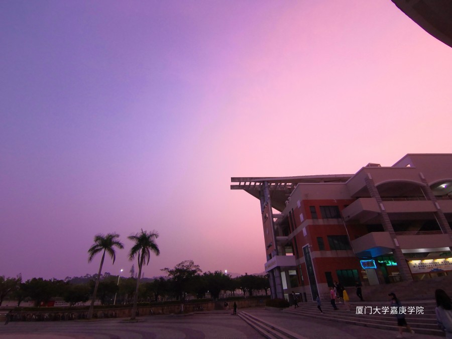 粉色与紫色相接的天空为嘉庚的傍晚增添了神秘色彩。