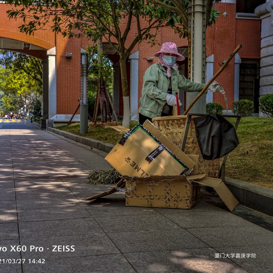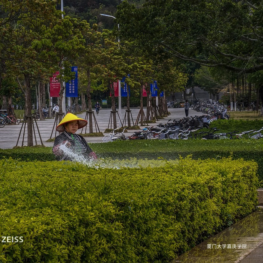 偶然路过时,一位保洁阿姨正在将丢弃的罐子里面的水浇灌草坪,我随后蹲下拍照记录,爱意却对我会心一笑。这个时候阿姨仿佛像一束光一样,让我觉得这是她对她工作的认同和喜爱。