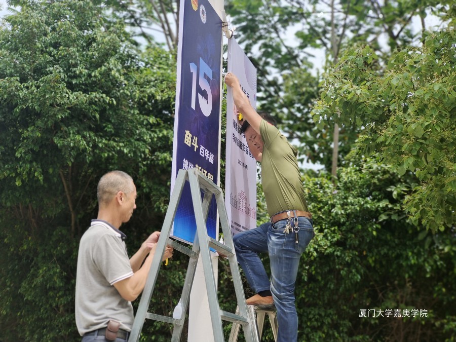 烈日炎炎的正午时分,几位工人叔叔分别顶着阳光摘下旧海报,换上新的活动海报。从和他们的交流中,叔叔们很快乐的和我们分享着他们工作的一些细节之处,同时也在认真的做着他们的工作。