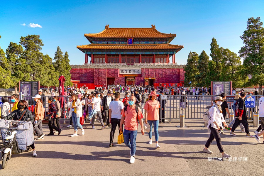 这儿是北京故宫门口,来这儿参观的人挺多的。