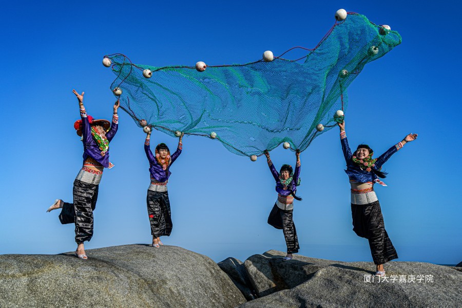 泉州惠安女,撒网捕鱼。
