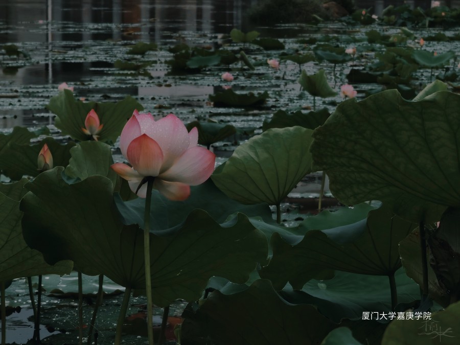 有的荷叶才只冒出一点嫩尖,可爱极了;有的已经长成手掌般大了,微风吹来,随风摇曳,高高挺立。