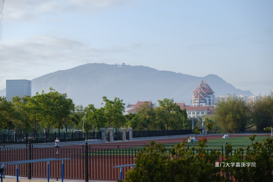 晨光倾泄,远处的薄雾还未消去,田径场上慢跑的身影散发青春的活力。