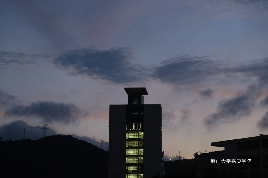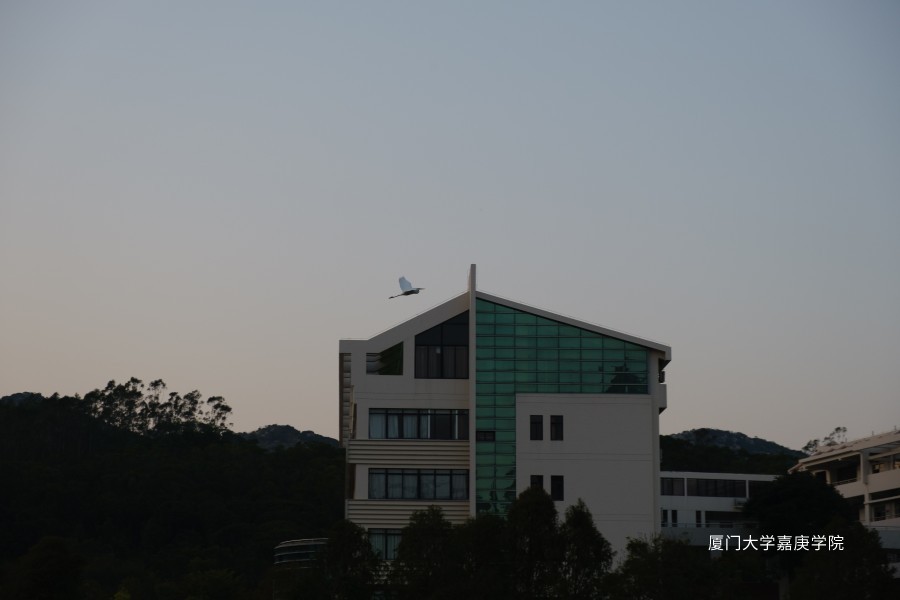 白鹭掠过经管大楼,伴着暮色飞向远方。