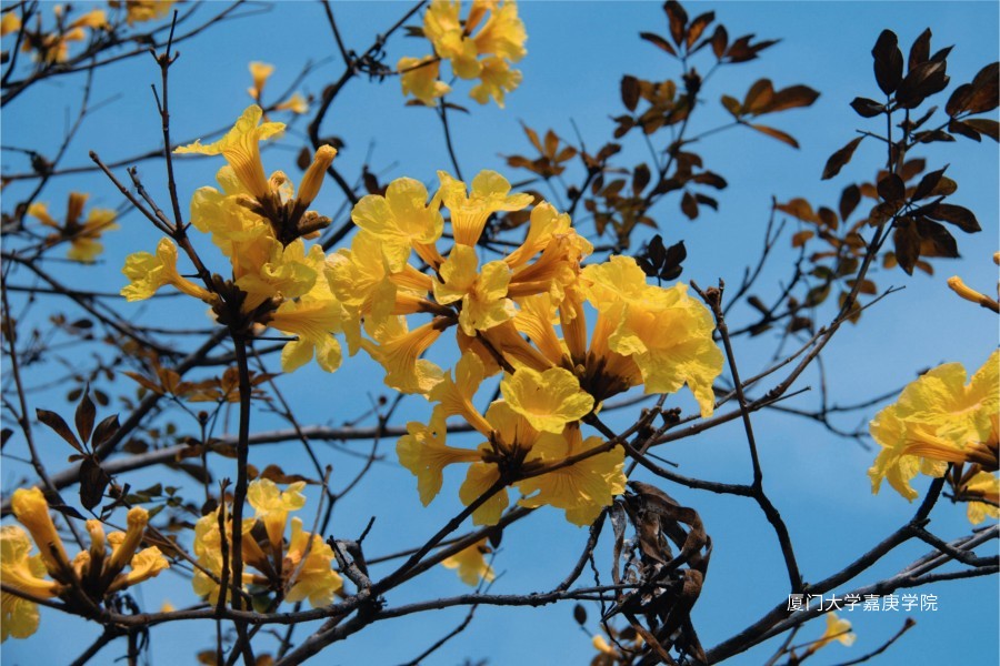经过了三季的漫长等待,黄花风铃木终于在春日暖阳中与我们相遇。阳光映照下的黄花风铃木显得更加光彩夺目,放眼望去,那成片的黄花是“嘉园”一道靓丽的风景线。
