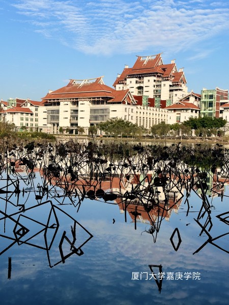 主楼群就矗立在这清澈的水面上,它的本体庄重而沉稳。