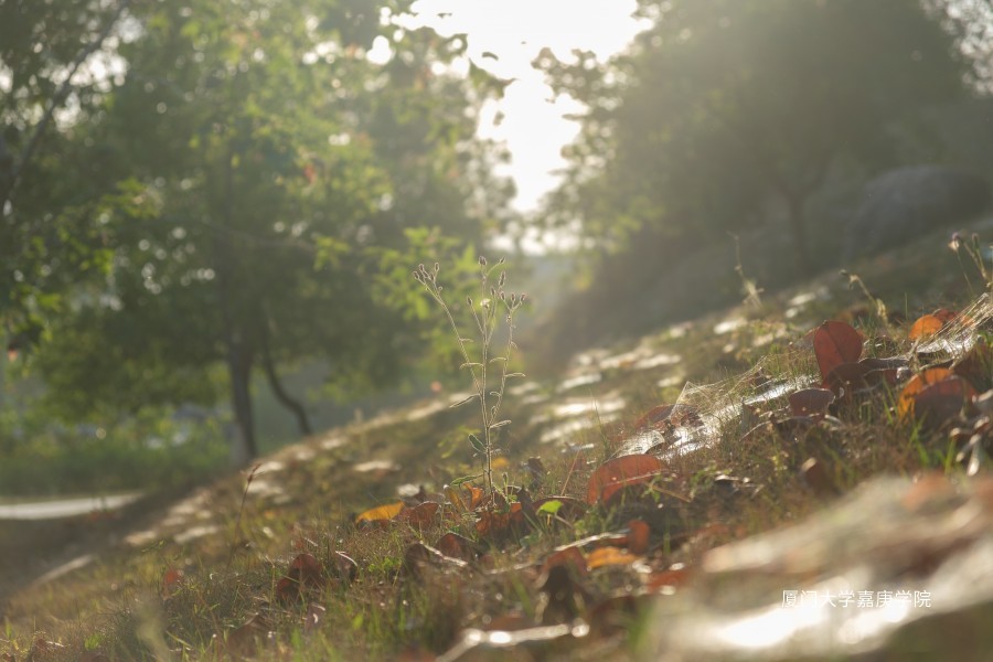 海风迎面吹来,刮起了落叶,只有这株小草仍然挺立。