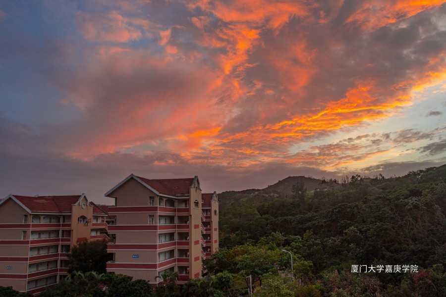 夏日的旁晚,在嘉园里时常会出现火烧云,热烈又壮观的火烧云搭配着嘉庚的特色建筑,真是一道靓丽的风景线