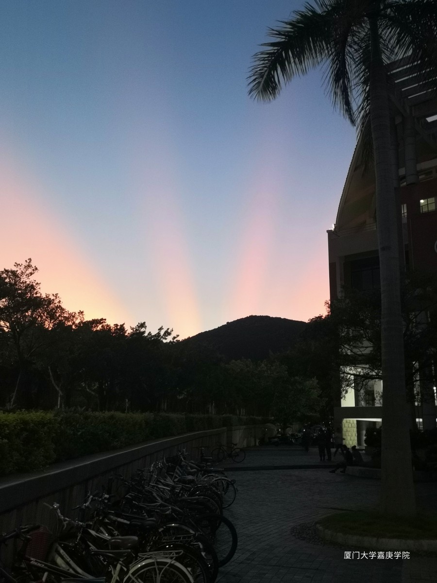 那日吃完饭,在食堂门口突然看见这半天朱霞,粲然如焚,映着草地也有三分红意了。这是太阳落山吗?倒像是月亮一不小心掉进了烟囱里,溅起点点火星。