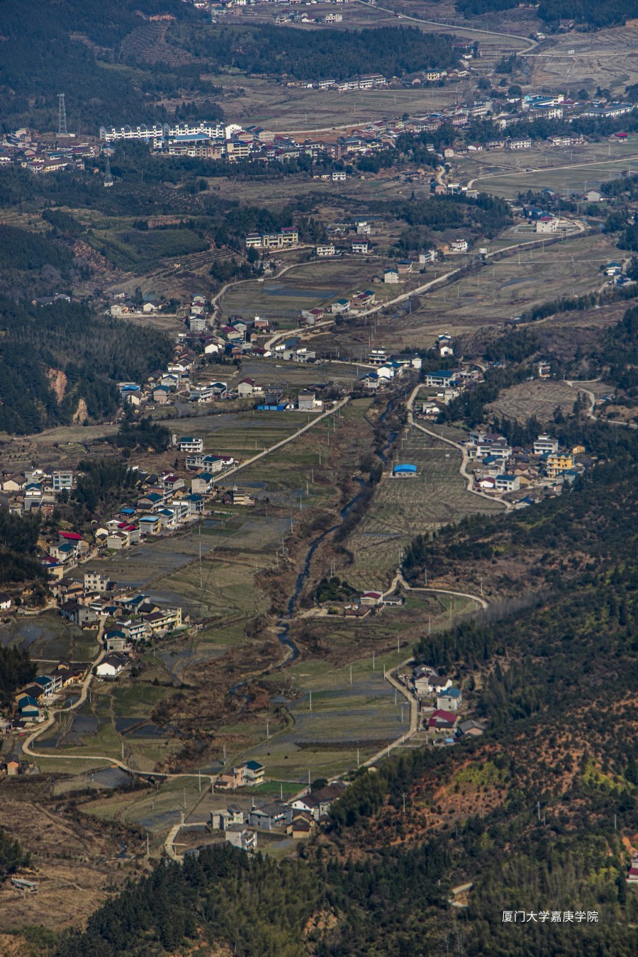 村落、田地、高山错落交织,形成一幅幅美丽的画卷,这是大好河山,锦绣山村