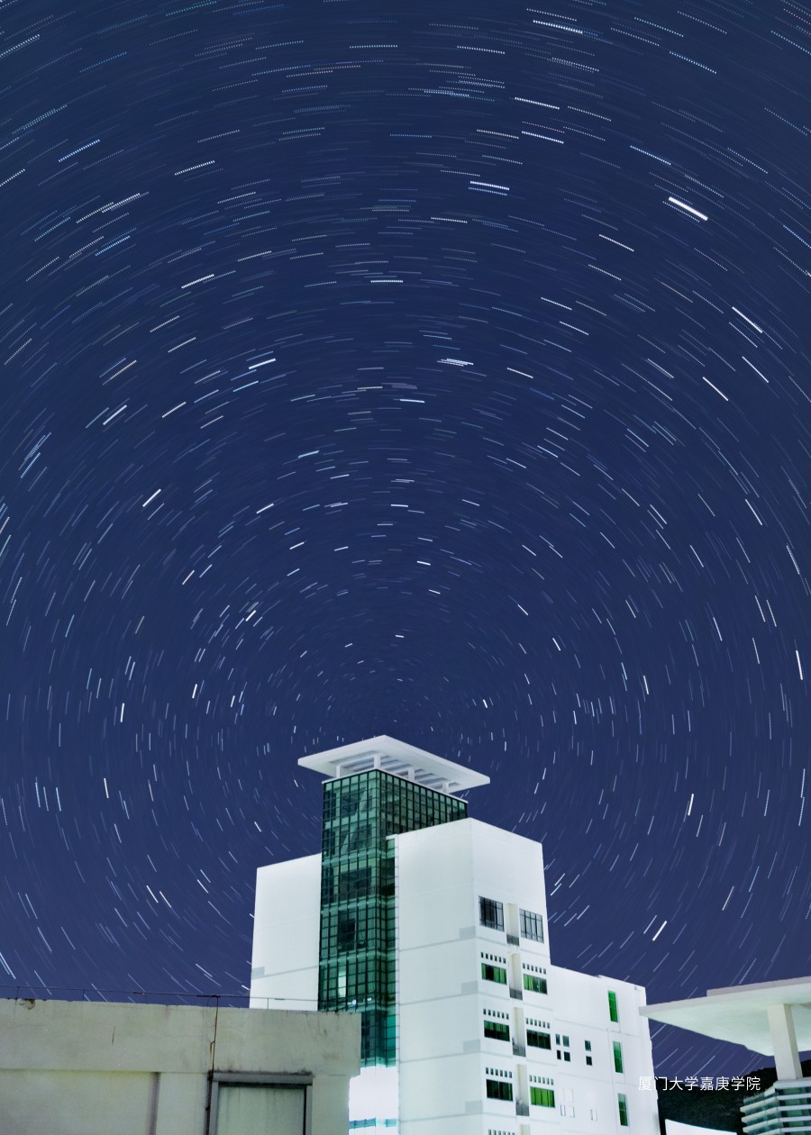 一直有一个在嘉庚拍星空的想法,受限于天气以及器材的原因很难实现,终于有一天晚上,天气很晴朗,星空隐隐约约浮现出来。我去了理工楼顶调试好设备,用佳能5D4搭配EF24-105拍下来这图。