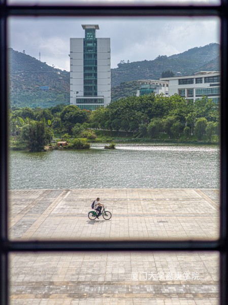从图书馆的落地窗前往下望,是“嘉”人在和煦阳光中求学的身影。