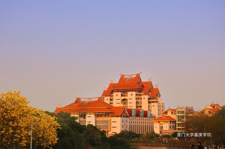 在夕阳的照射下主楼像是穿上了金灿灿的新衣