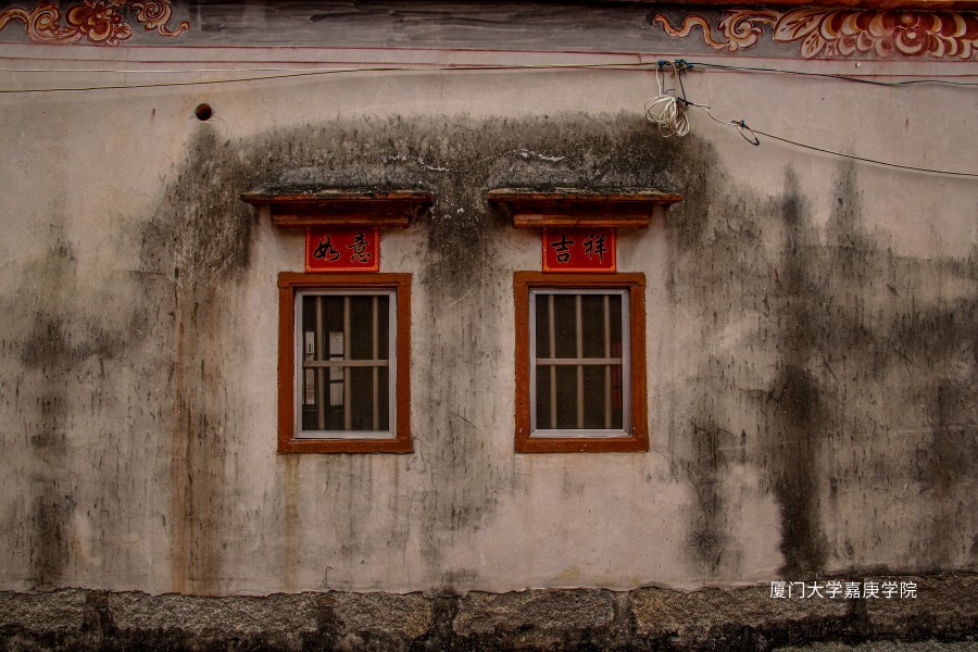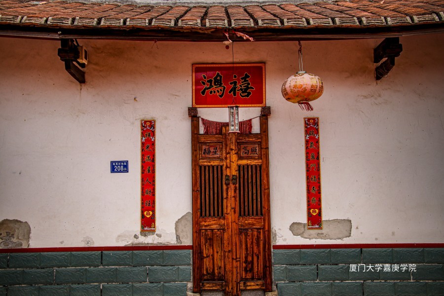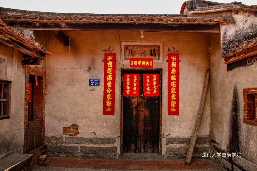埭美古村的建筑主体呈现硬山式燕尾脊建筑风格,独特的门边对联是埭美古村老建筑的特色。