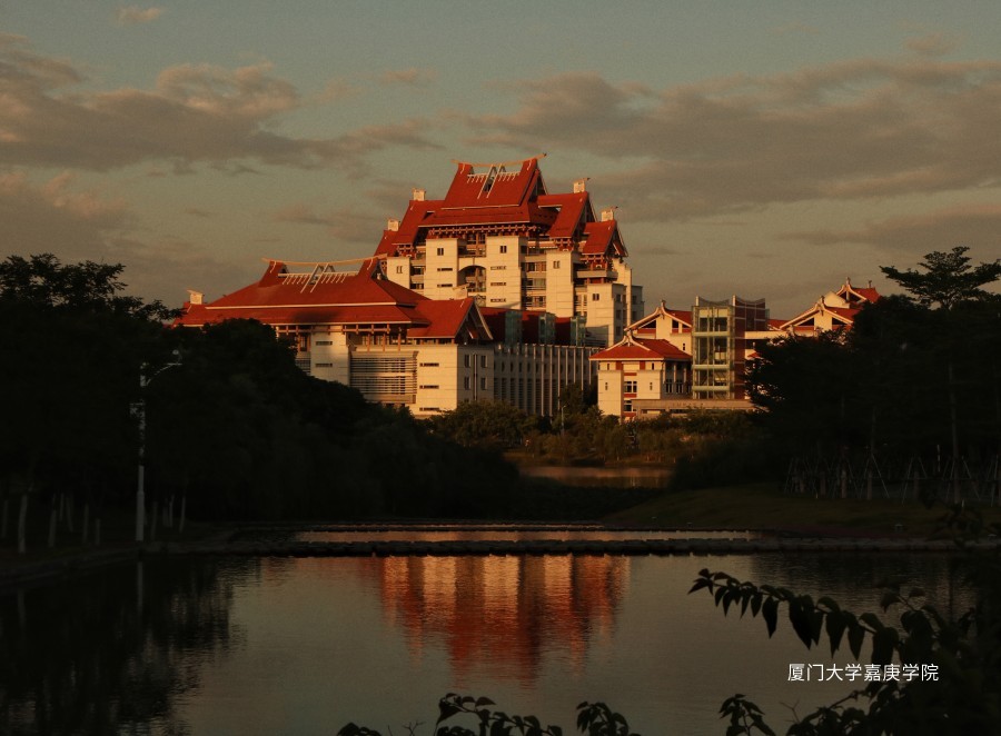 余晖映于主楼与云彩共同谱写出恢弘大气的感觉,