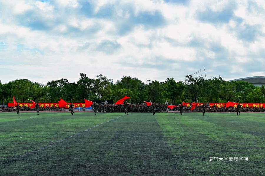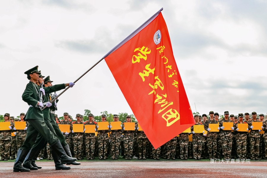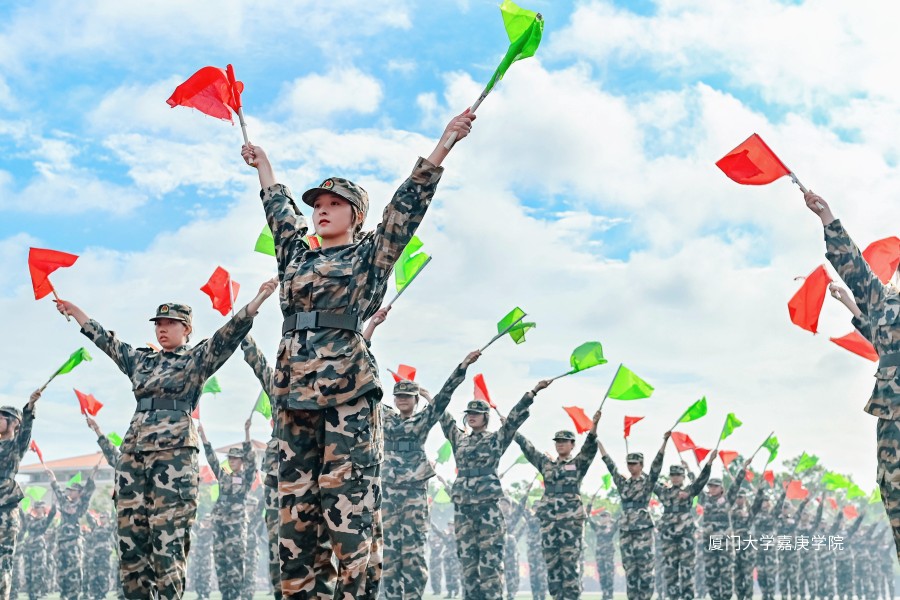手中挥舞鲜艳的红旗随风烈烈舞动