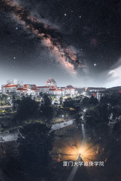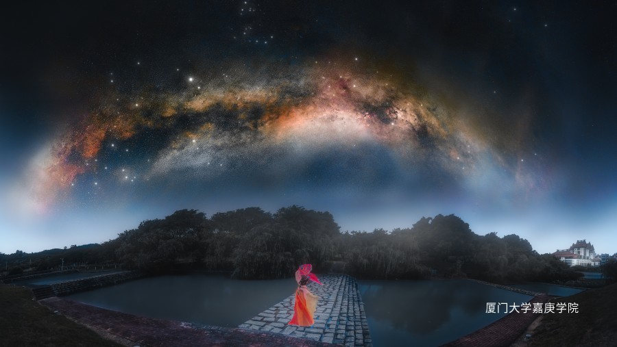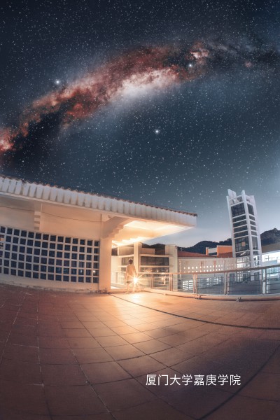融合嘉院独特的人文地景与璀璨银河,呈现校园星空的诗意画卷(富有几何美感或人文意蕴的视角,避开光源直射)