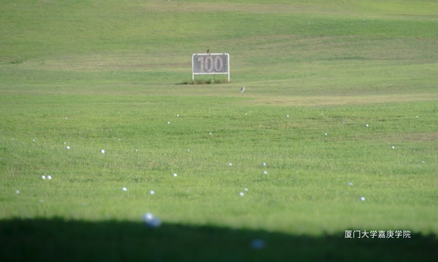 绿色草地上,散落的白色高尔夫球如繁星般与远处的白鹭相呼应。高尔夫场并没有成为人类的专属,是人与自然和谐共处的最好体现。