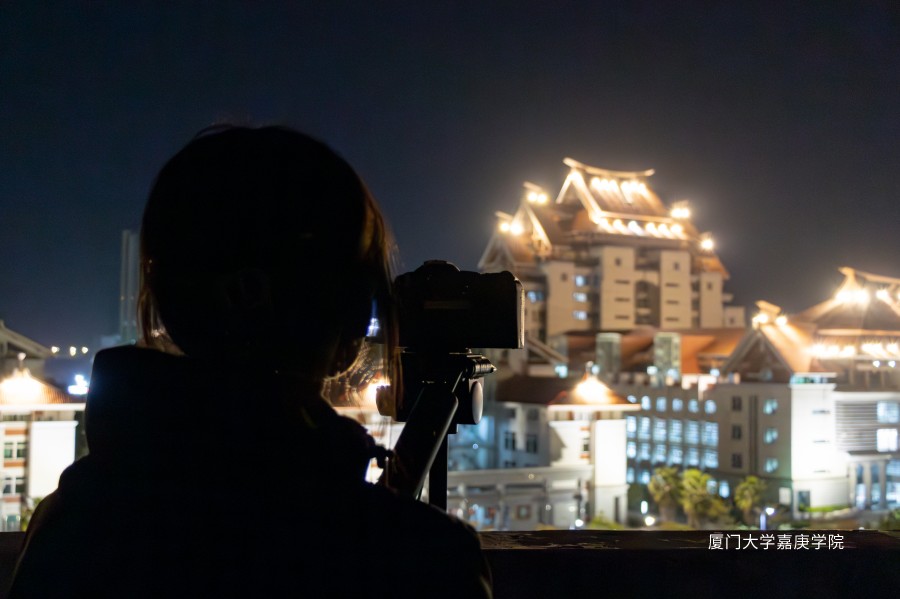 夜幕下的主楼群灯火辉煌,映照着青春的探索与执着
