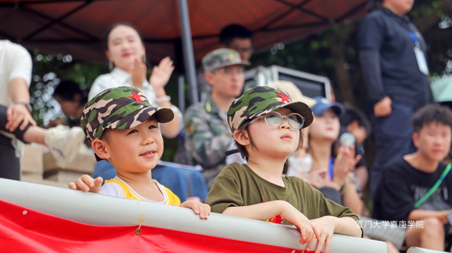 观众席边的小小少年,和哥哥姐姐们一样戴起了迷彩帽