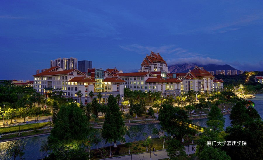 嘉庚学院夜晚的天空是蔚蓝的,夜色是静谧的,犹如梦境般魔幻。