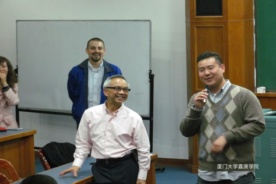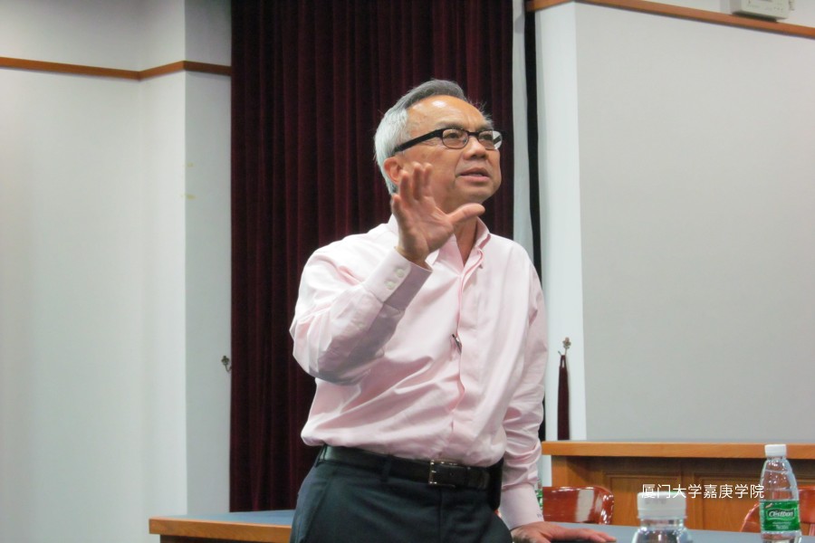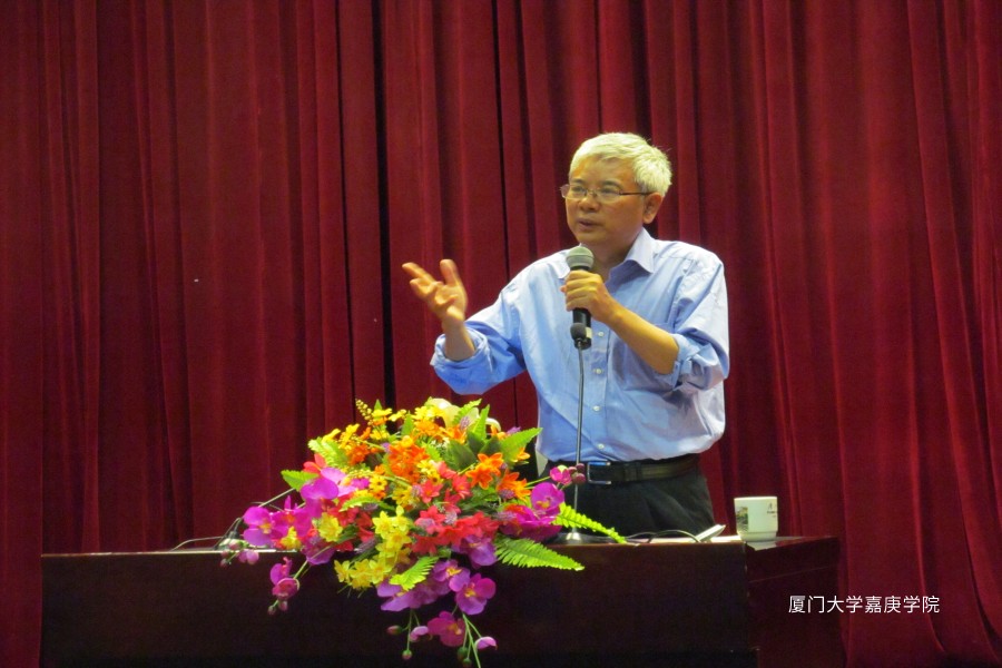 白色的头发,看得出院长对嘉庚学院之用心良苦;有力的手势,展示出演讲时之气势澎湃。