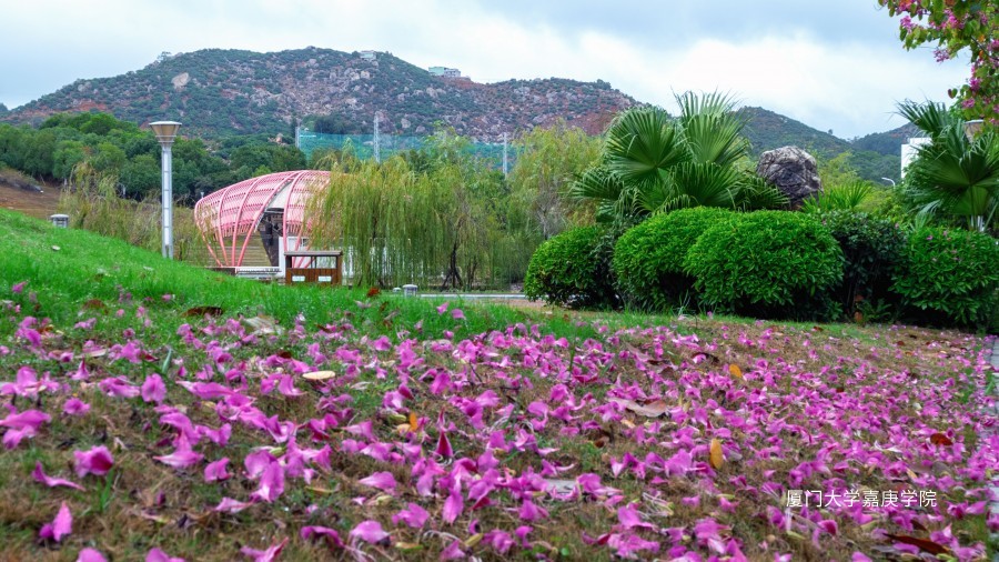 在我的大学中有很多品种的花,我将花与校园建筑相结合,展现嘉园别样的风景!