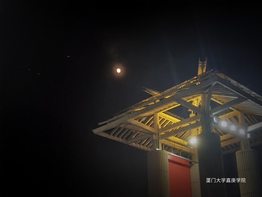 无论是月光又或是“嘉园”大门旁高高悬挂的灯光都仿佛在为我们指引着方向