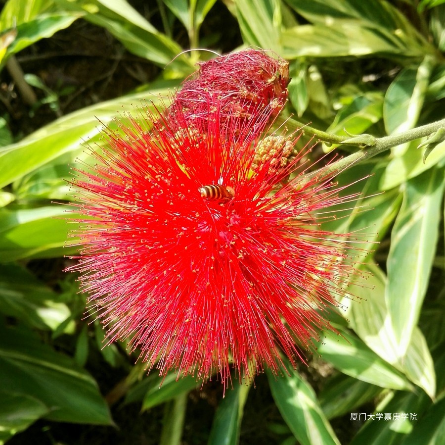 嘉园草木志之冬日某个午后公一门前的美蕊花和小蜜蜂
