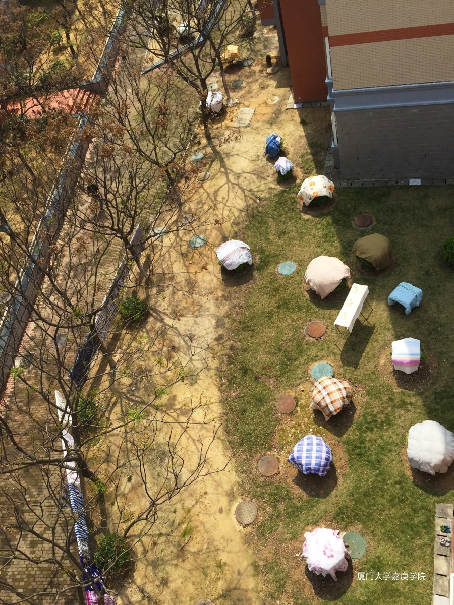 晴天,晾晒被子,俯瞰似花儿朵朵。
