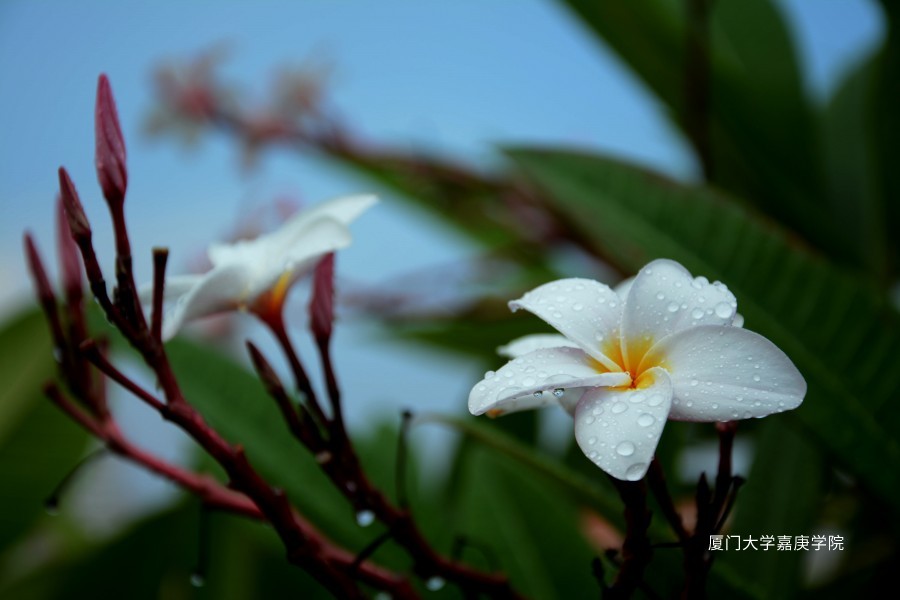 学活前的几株鸡蛋花树,不为人所注意,却开着如此高洁的花朵。