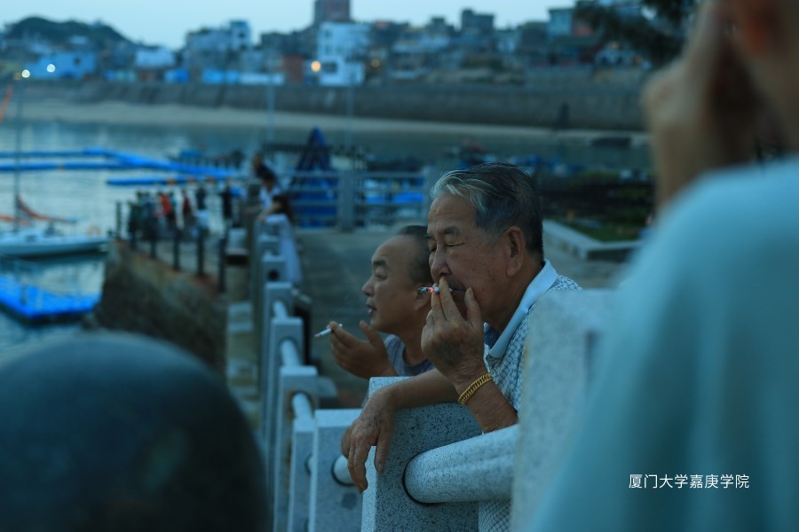 东山岛的老人在一个普通的旁晚望向远处的大海深吸一口烟