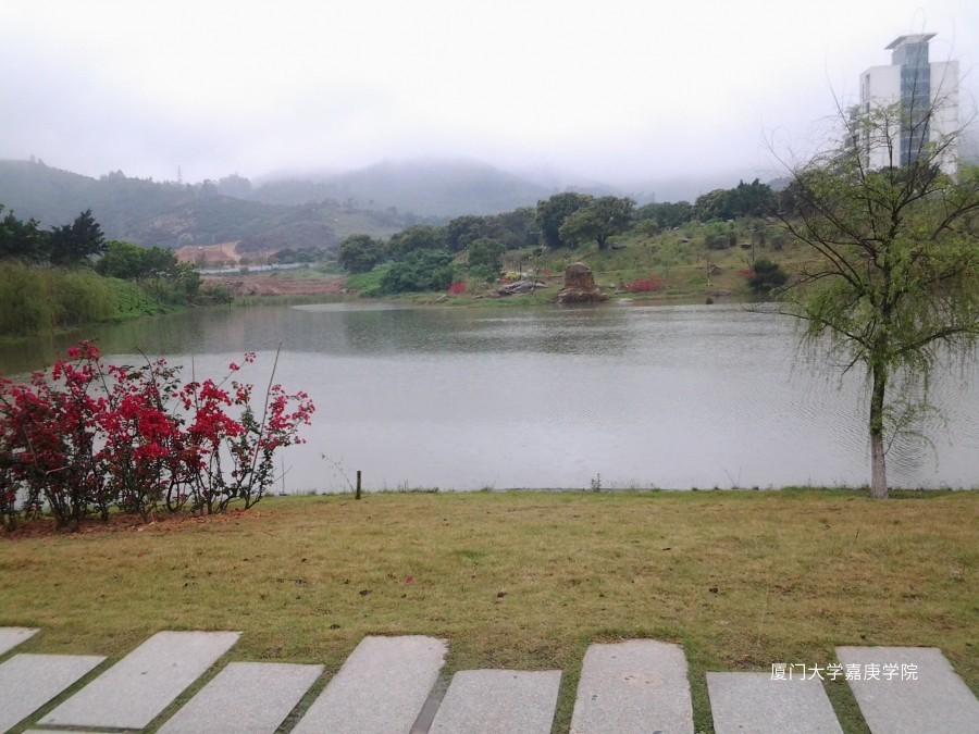 下着蒙蒙细雨,湖对面的景致犹如仙境,尽管是上课途中,我还是忍不住拿出了手机,咔嚓!