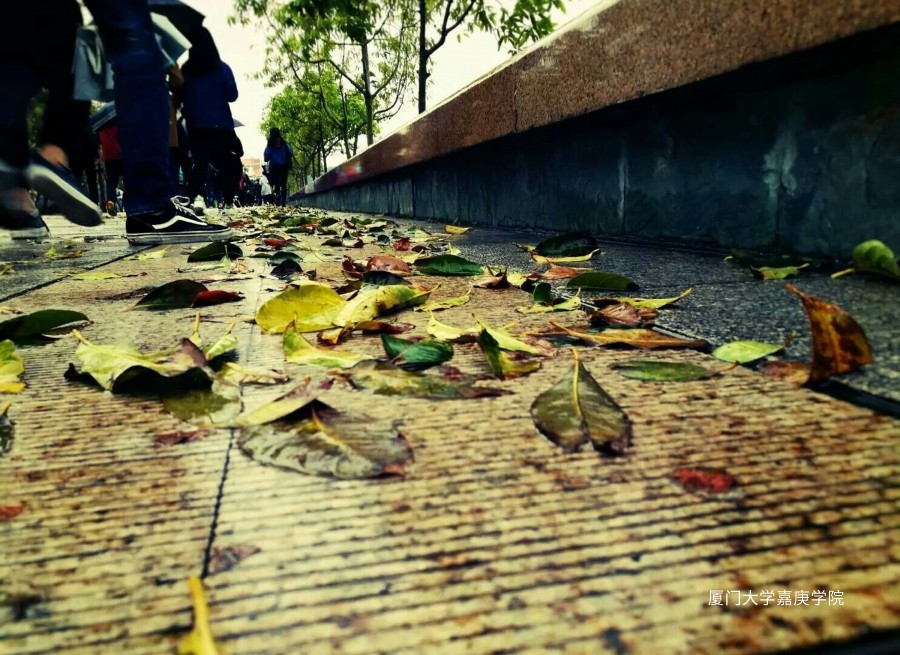 狂风打落的满地黄叶