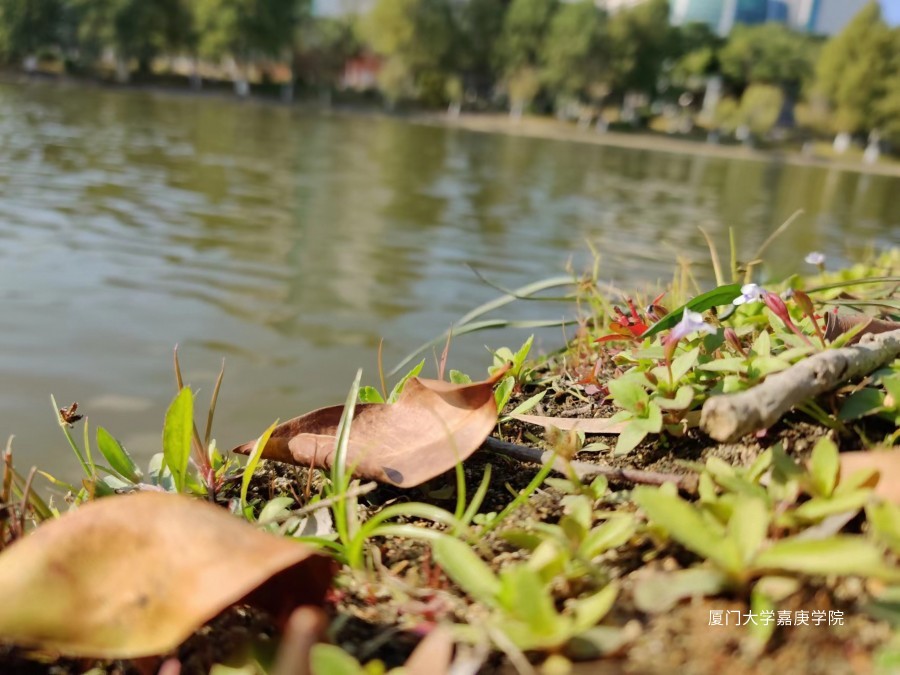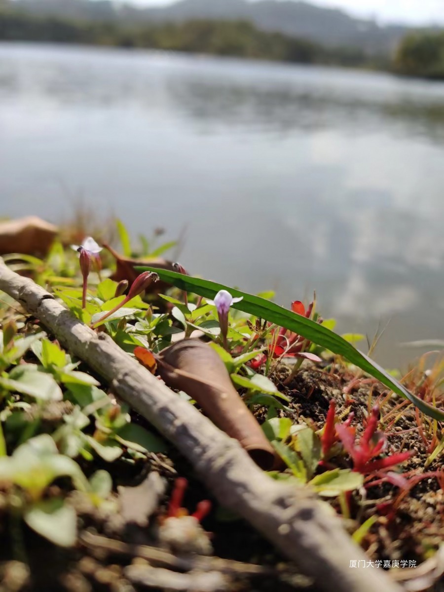 不知名的小花含苞待放,娇小的花苞吹弹可破,但却依然扎根栖霞湖边的水土。