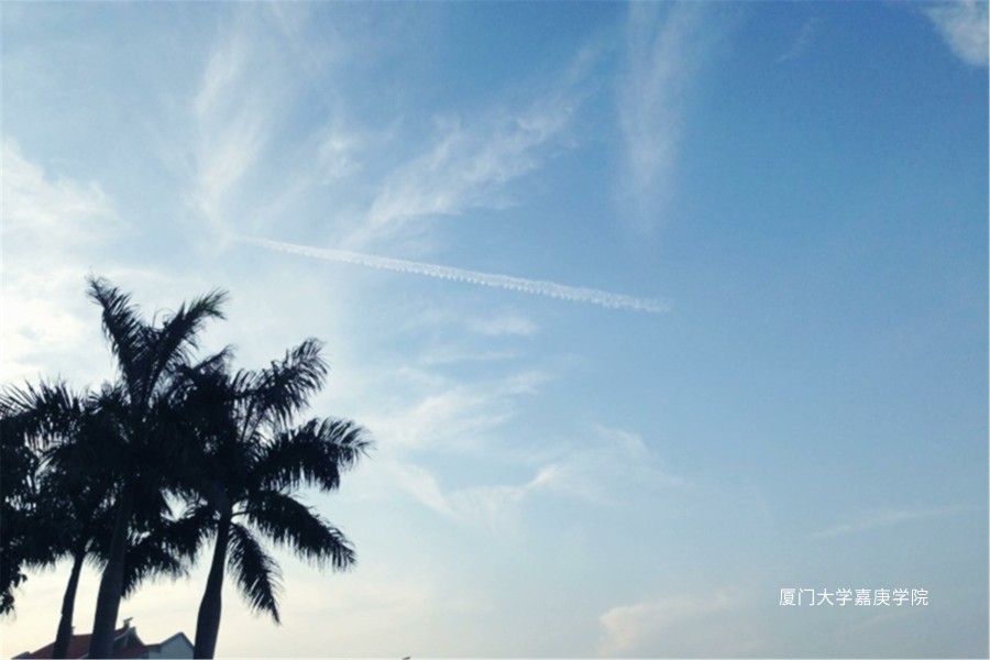 去上晚课的时候,和同学散步到正门时,觉得这棵树以天空为背景,很有热带沙滩黄昏时分的感觉,就拍下来了