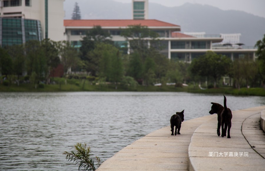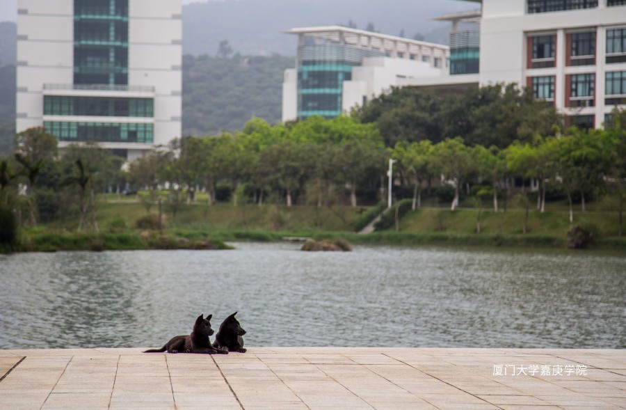 在湖边休憩的小黑俩