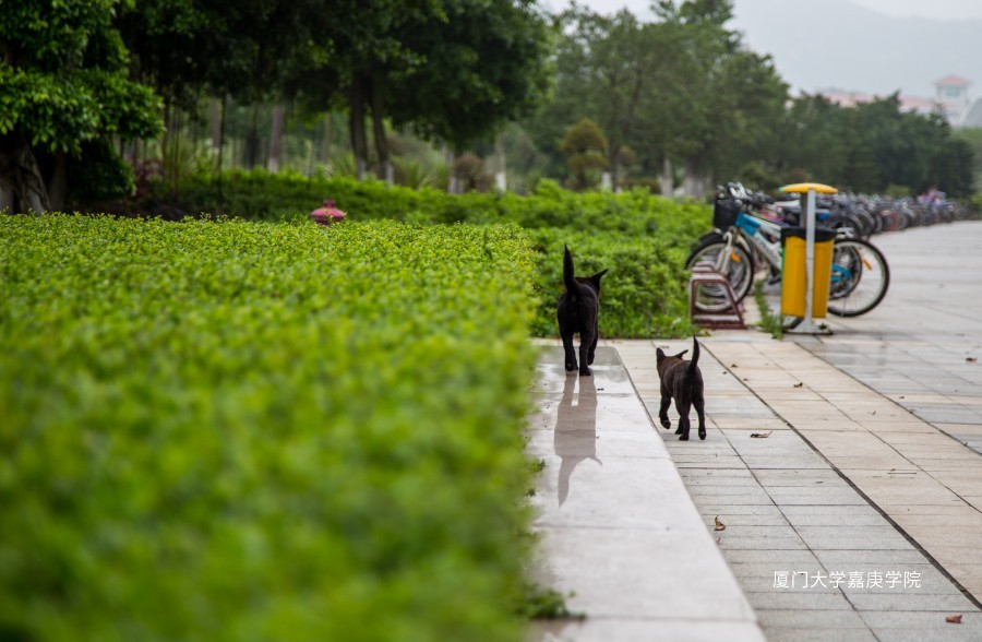 冷雨夜,图书馆闭馆后赶回宿舍的情侣。