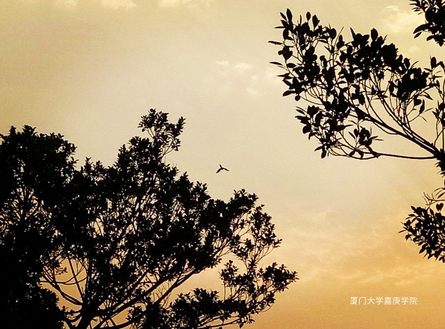 傍晚,孤零零的靠在老了的木桥上,看着慵懒的夕阳,和我一样孤零零的挂在经管楼上,却还洋溢着青春的炽热。