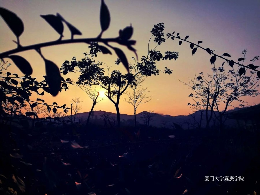 横错的枝丫悄悄商量着,说是打算将落日偷偷藏起来。殊不知,落日早就给群山的边沿、还有树枝的缝隙镀上了一层金色的光。
