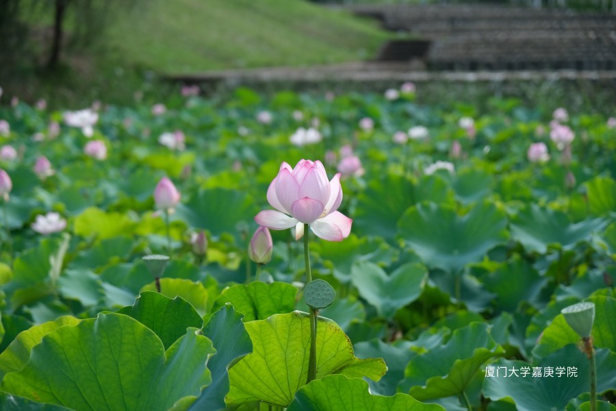 捕捉了校园里五颜六色的“绿”,有荷塘的绿,有草的绿,还有树的绿。