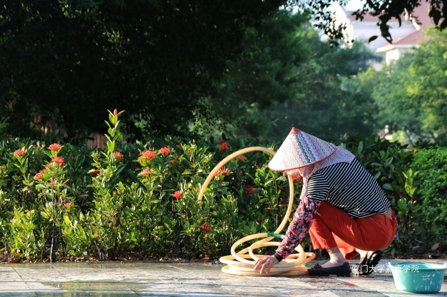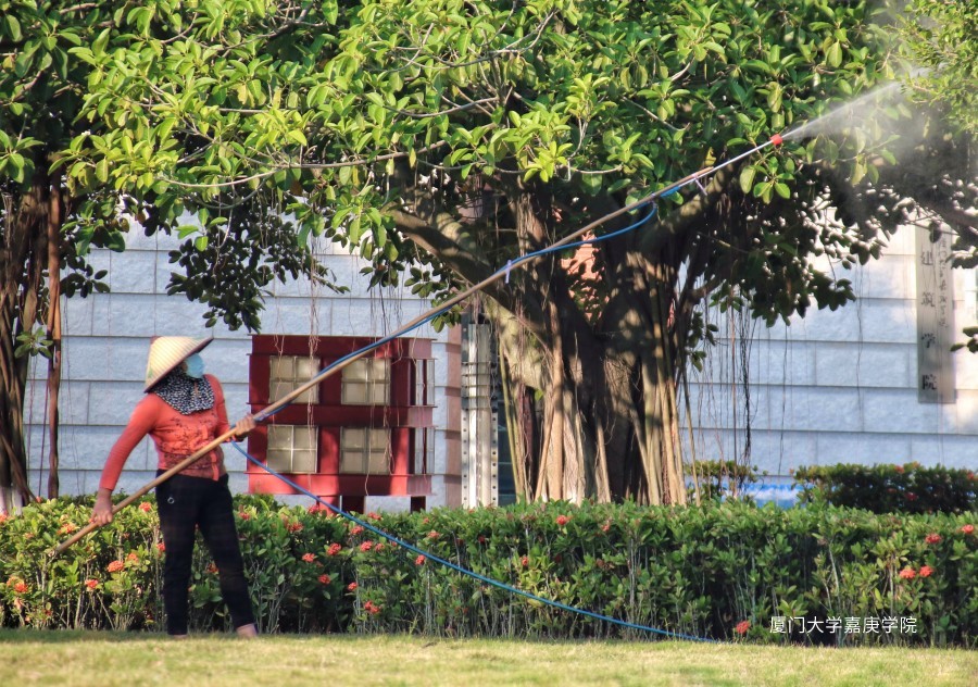 清晨的“嘉园”,昆虫与鸟儿刚刚苏醒的时候,洒水工人便开始浇灌“嘉园”,让泥土得到滋润,花儿得以生长。