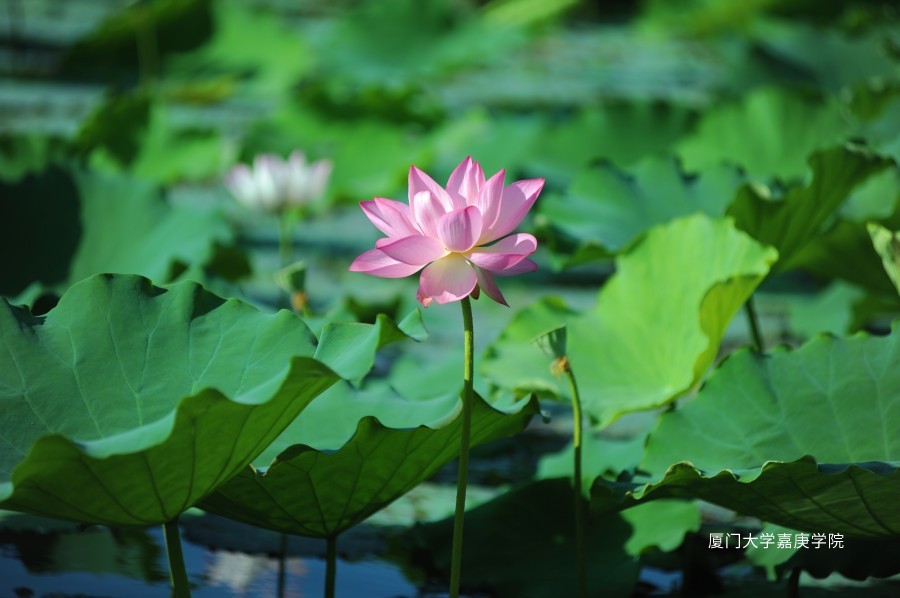 此组图片摄于2019年夏至日,正直嘉园荷花开得最旺盛的时候,繁茂的花朵在烈日下尽情地释放自己的色彩,正可谓接天莲叶无穷碧,映日荷花别样红