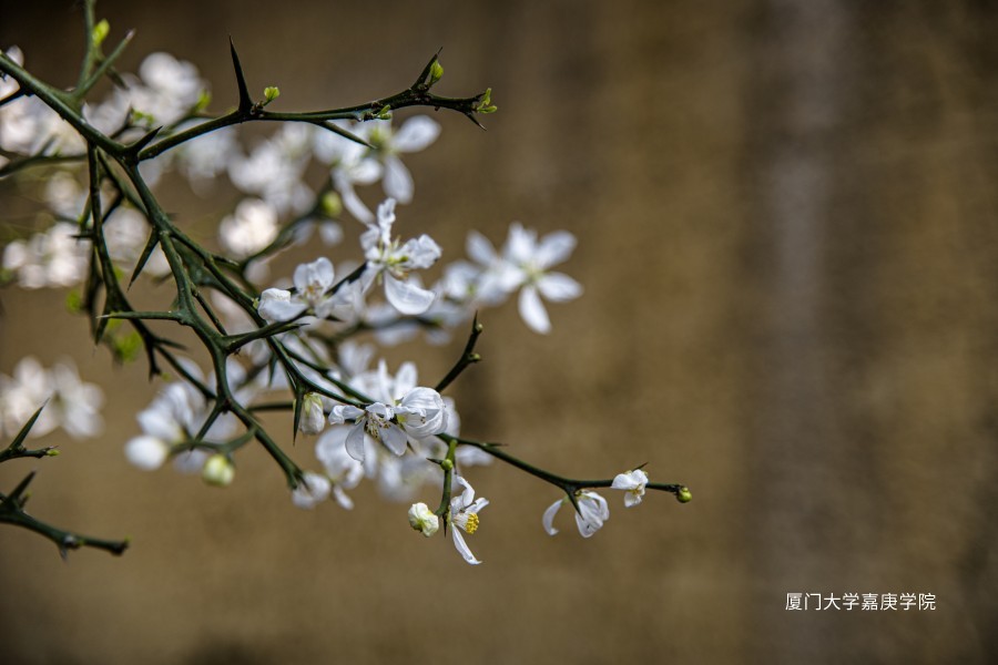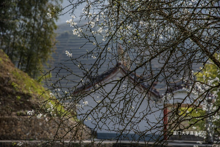 每年三月,福建省南靖县葛竹村的枳实花在乡间小道中悄然开放、美不胜收。素色的小花与土楼形成一片和谐的美景,吸引了不少游人前来赏花踏春。