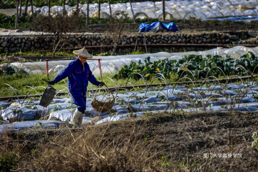 以为农民婆婆挑着水准备浇灌蔬菜。